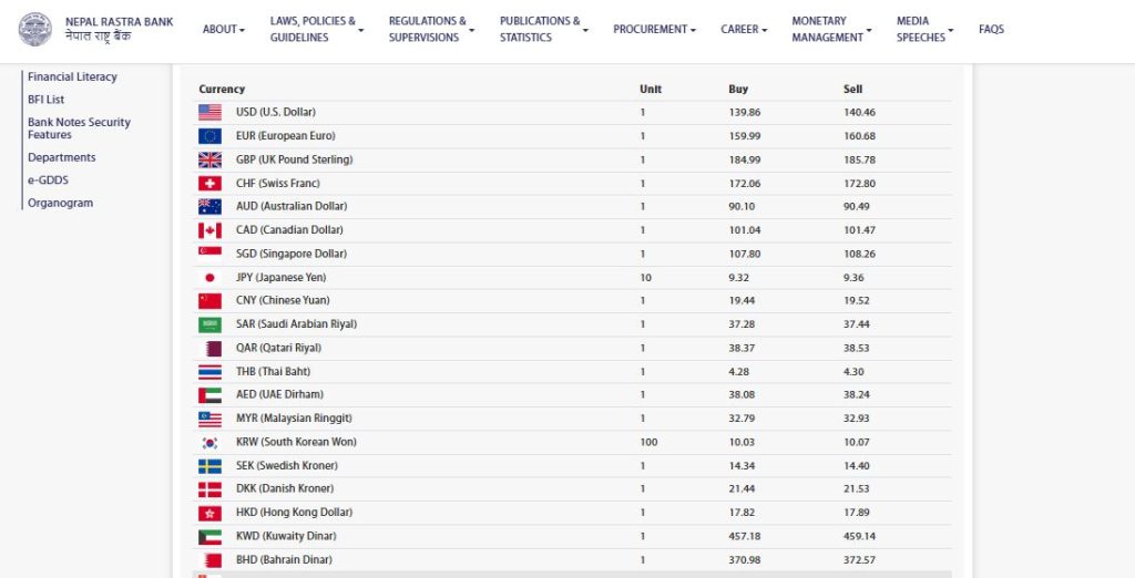 अन्य प्रमुख मुद्राको विनिमयदर यस प्रकार छः