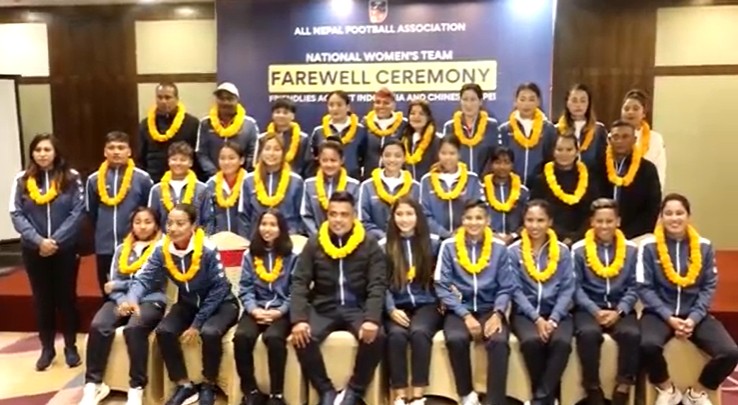 आइतबार काठमाडौंमा आयोजित एक कार्यक्रममाबीच एन्फा पदाधिकारीहरुले नेपाली राष्ट्रिय महिला फुटबल टोलीलाई विदाई गरेका हुन् । आगामी नोभेम्बर २६ देखि इन्डोनेसियामा नेपाल, घरेलु टोली र चाइनिज ताइपेइ सम्मिलित त्रिदेशीय प्रतियोगिता हुँदैछ । स्टार खेलाडी सावित्रा भण्डारी घाइते भएका कारण प्रतियोगितामा सहभागीता जनाउन नसक्ने मुख्य प्रशिक्षक नवीन न्यौपाने बताउनुभयो । सावित्राबिना नै नेपाली टोलीले आफूभन्दा बलियो चाइनिज ताइपेईसँगै इन्डोनेसियालाई हराउँदै उपाधि जित्ने लक्ष्य राखेको उहाले बताउनुभयो । एक हप्ताको प्रशिक्षणका क्रममा नेपाली टोली बलियो रुपमा खेल्नका लागि तयार देखिएको उहाको भनाइ छ ।