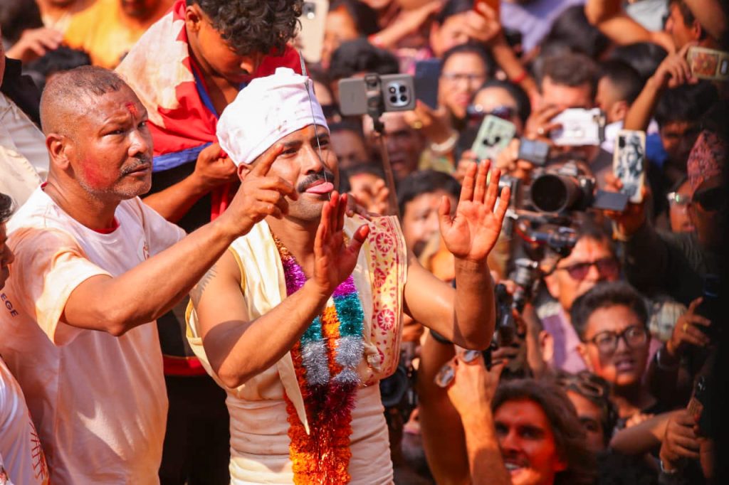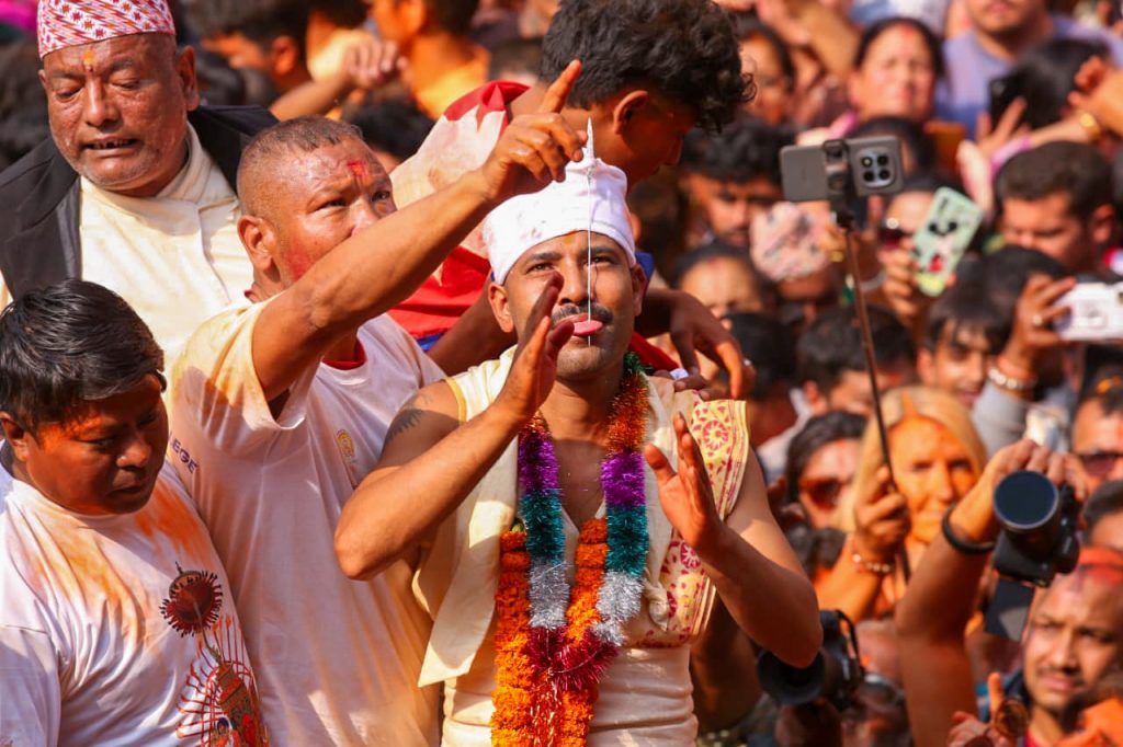 जात्रामा स्थानीय सुजन बाग श्रेष्ठले चौथो पटक जिब्रो छेडेर जात्रालाई निरन्तरता दिएका हुन् ।
